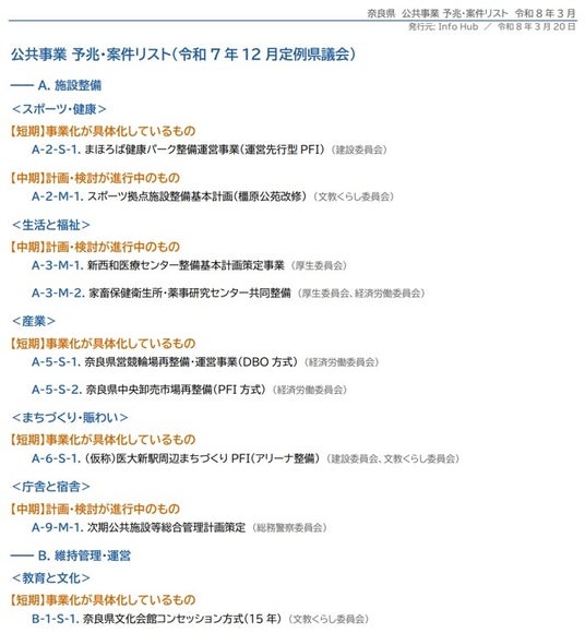 「公共事業 予兆・案件リスト」例)奈良県 令和 7 年 12 月定例県議会