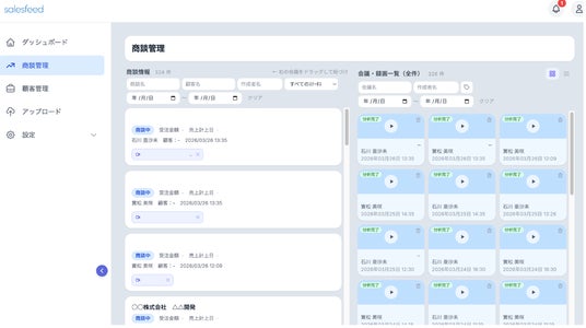 salesfeedは、AIが商談を分析し、営業現場の記録工数削減と成約率向上を実現するクラウドサービスです。今回の新機能搭載により、商談の「記録・分析・管理」を一気通貫でサポートするプラットフォームへと進化しました。