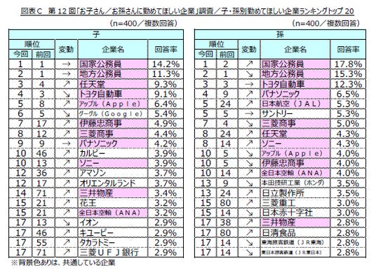 ・調査名称 : 第12回「お子さん/お孫さんに勤めてほしい企業」調査