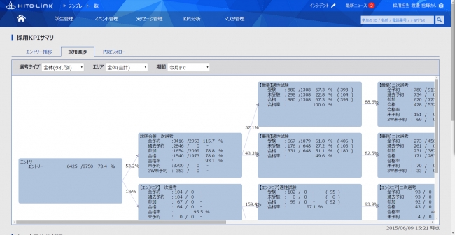 「HITO-Link」は、企業の採用ホームページをはじめ、ナビサイトなどの外部媒体からの応募を集約し、その後の面接、内定、承諾までを一括管理するシステムです。インテリジェンスがもつ人材サービスにて培った採用ノウハウに加え、グループ内で2年間トライアル運用を行った実績をもとに、人事担当者にとって使いやすい機能を盛り込みました。