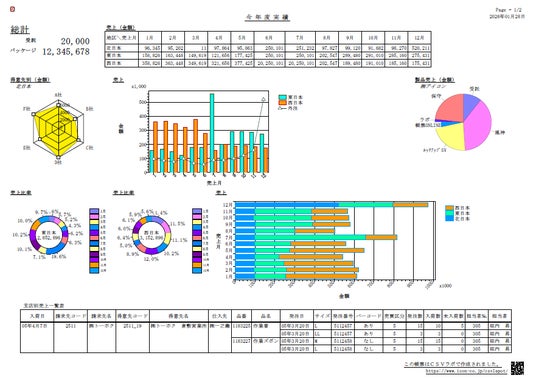 ダッシュボードモードで出力したレポートの出力イメージ(1ページ目)