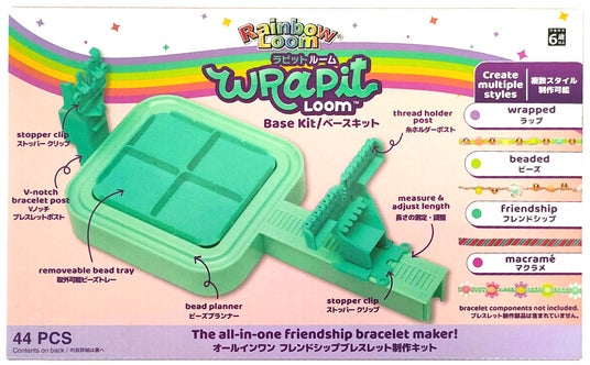 新「Wrapit Loom(R) (ラピットルーム)」新「Wrapit Loom(R) (ラピットルーム)」はラップブレスレット、マクラメブレスレット、フレンドシップブレスレット、ビーズブレスレット等が制作できるオールインワンフレンドシップブレスレット制作キットです。