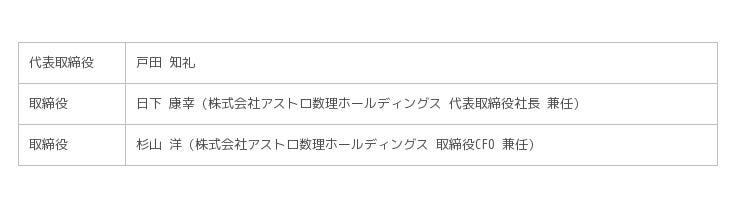 人間中心に設計された業務システムを世界最速クラスの処理速度で提供するアストロラボ株式会社(東京都世田谷区)は、2016年3月25日の株主総会において、代表取締役および役員の交代が決定いたしました。本交代は、親会社である株式会社アストロ数理ホールディングス(東京都世田谷区:代表取締役会長 小川浩二)と兼任体制であった代表役員を専任とし、今後の更なる事業拡大にむけた体制強化を目的としています。