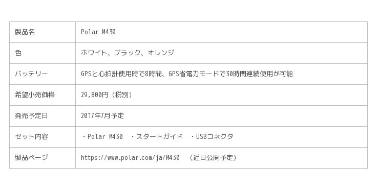 <Polar M430 製品概要>