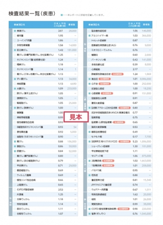 ※検査レポートブックに掲載される検査項目は変わる可能性がございます。