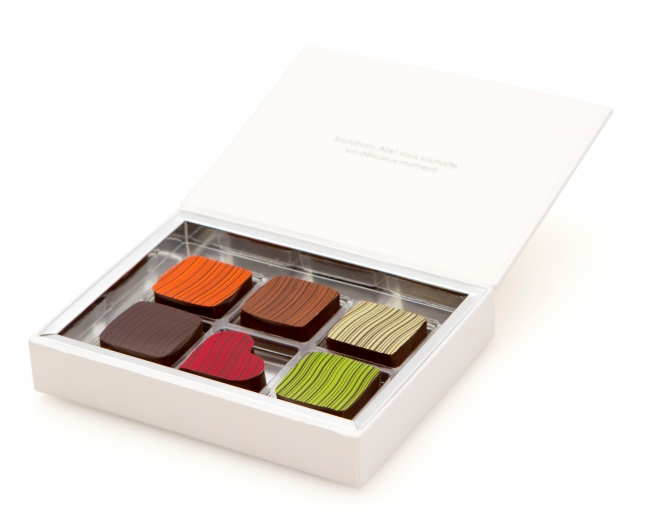 愛知県南山園の抹茶や、ほうじ茶・玄米茶の奥深い味わいと、マイルドなショコラが和の奥行きを奏でます。パリの「サロン・デュ・ショコラ」でも人気を博した、かわいらしいミニタブレットのアソート。本店のあるパリからの直輸入品です。