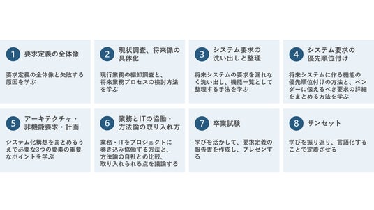 サービス「プロジェクトリーダーおよびプロジェクトチーム養成学校(以下、養成学校)」が、システム構築における要求定義の進め方を学ぶ研修「Scope コース」を 2025 年5 月より開講します。