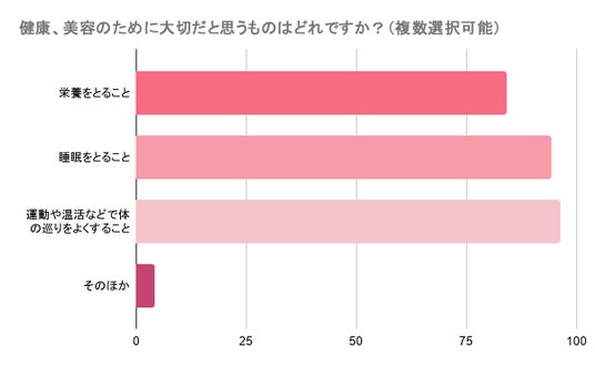 ・98%の人が、美容や健康のために睡眠、栄養摂取、体を巡らせるなど、対策をしている