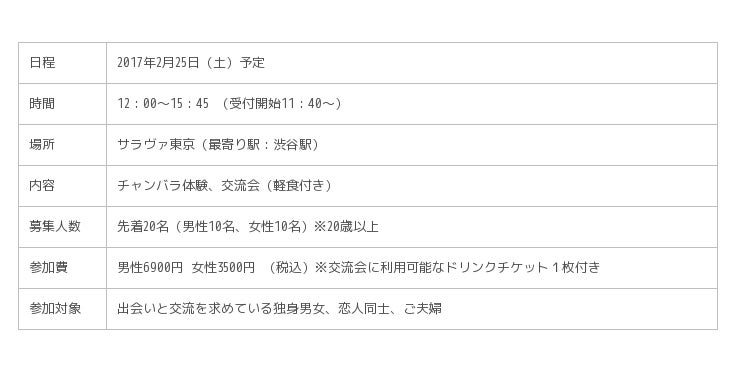チャンバラをテーマに出会いと交流を求めている独身男女、恋人同士、ご夫婦が参加できるイベント「チャンバラMeet’s」を2月25日(土)にお食事も楽しめる渋谷のライブハウス「サラヴァ東京」で開催します。