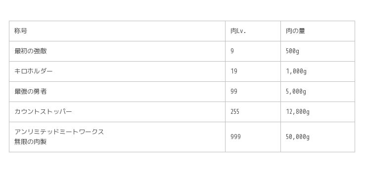 当店では、肉Lv.システム(ニクレベルシステム)を考案。肉Lv.1(通常サイズ:牛肉100g)から、Lv.を1つ上げていく毎に50gずつ、際限なく自分が食べたい分だけ増量することができます。(+300円/Lv。※通常Lv.10以上要予約
