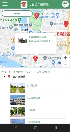 住之江区内の施設情報や名所、登録団体の紹介等を、地図上から見ることができます。