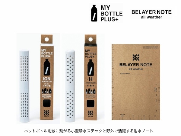 ◯BELAY base SET / 小型浄水ステック「MY BOTTLE PLUS+」2種と耐洗紙でできた野外で活躍するオールウェザーノート「BELAYER NOTE all weather」を大変お得にお試しいただけるセットです。※こちらのセットは上記のリターン品すべてに付きます。