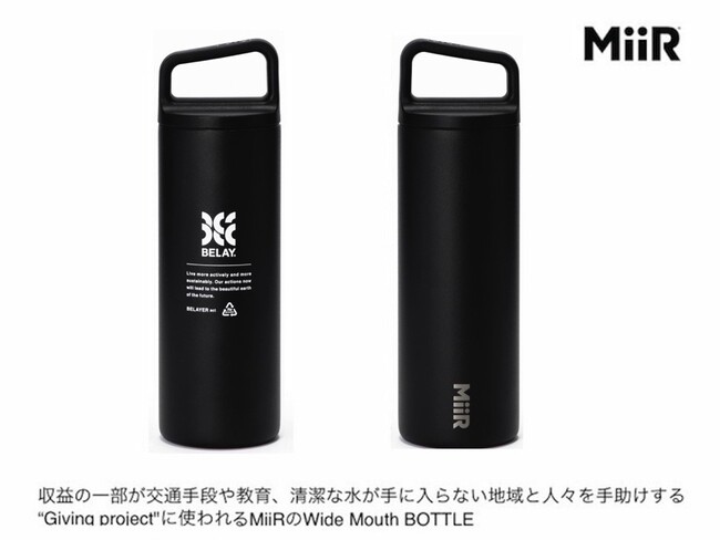 ◯BELAYxMiiR Wide Mouth Bottle 【数量限定商品】 / 「MiiR」の保温・保冷力に優れたダブルウォール真空断熱材で作られたMiiR Wide Mouth Bottle(カラー/ブラック サイズ/16oz / 473ml)とBELAYのコラボレーションボトル
