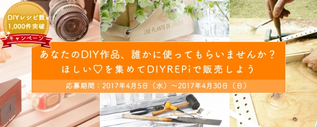 今月5日(水)より、ユーザーから投稿されたDIYレシピ数が1,000件を突破したことを記念し、規定の条件を満たすことでユーザーがDIYREPiサイトに併設しているECモール「DIYREPi Online(ダイレッピオンライン)」で自身のDIY作品を販売することができるキャンペーンを実施しております。