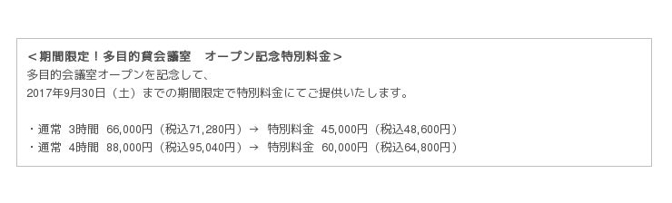 なお、2017年9月30日までの期間限定で オープン記念特別料金 をご用意しております。