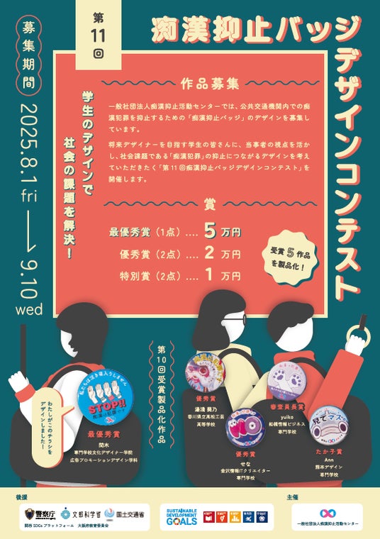 一般社団法人 痴漢抑止活動センター(大阪市城東区関目 代表理事 松永弥生)は、2025年8月より募集開始予定の「第11回 痴漢抑止バッジデザインコンテスト」において、新たにコミー株式会社(埼玉県川口市並木、代表取締役社長 小宮山哲)の協賛を受けることが決定しました。
