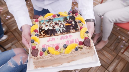 入社式のために作られた特別なケーキ