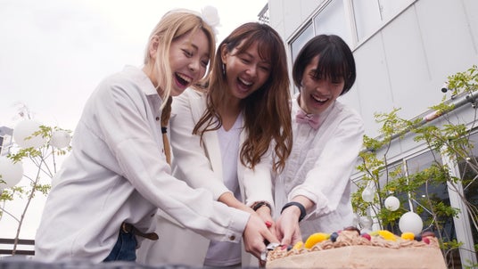 新入社員のふたりが、真面目社員に見守られ入場。誓いの言葉を述べた後、平川代表による愛ある挨拶、入社する2名からの感動的なスピーチ。そして本日の特別な入社式のために用意されたケーキに代表平川含め3名ではじめての共同作業となりケーキ入刀をおこないました。笑いあり、涙ありの入社式の様子を本日動画にて公開しました。