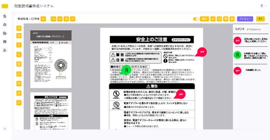 取扱説明書は、製品ごとに特性を理解し、消費者への安全警告を記載する必要があります。さらに、電気安全法をはじめとする複雑な規制や法律に準拠することが求められます。多くの家電事業者は、外注デザイナーにレイアウトデザインを依頼することが多く、従来のプロセスは時間とコストがかかっていました。