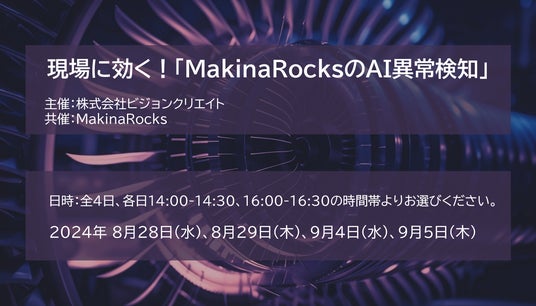 この度、ビジョンクリエイトはMakinaRocksのAIソリューションをご紹介するオンラインウェビナー(関連リンク記載)を開催し、製造現場におけるAI活用を促進してまいります。