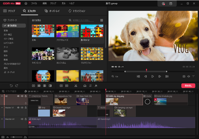 ・初心者でもプロ並みに動画編集ができる「GOM Mix Pro(ゴムミックスプロ)」は、直感的な操作で誰でも素早く本格動画が作成できます。また、様々なエフェクトやフィルターが収録されているのでもっと素敵な動画制作が可能ですし、クリックするだけで簡単に自作動画を仕上げることができます。Youtuberを目指しているが編集ソフトが慣れていない方や思い出のため動画をきれいに残したい方にも必要なソフトです。