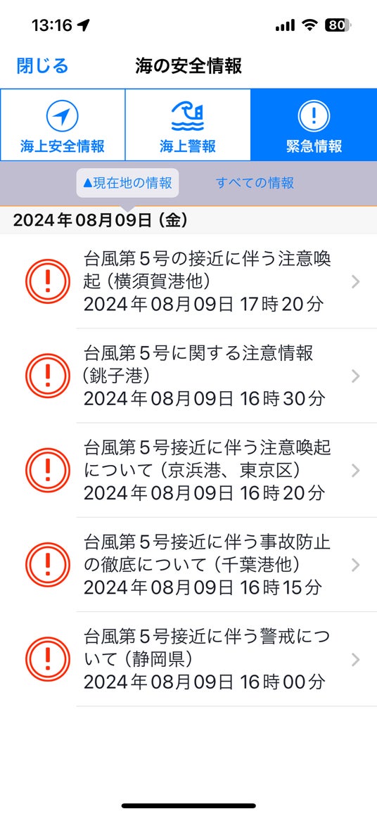 海上警報や海上保安庁の緊急情報をプッシュ通知