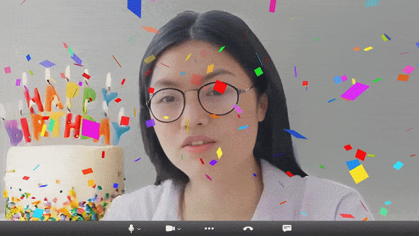 また、ボタンをクリックするだけで、LINE のスタンプのように、対面のコミュニケーションではできないデフォルメされた動きも取り入れた豊かな感情表現を、画面上の自分の映像やアバターを通じて実現できるようになります。