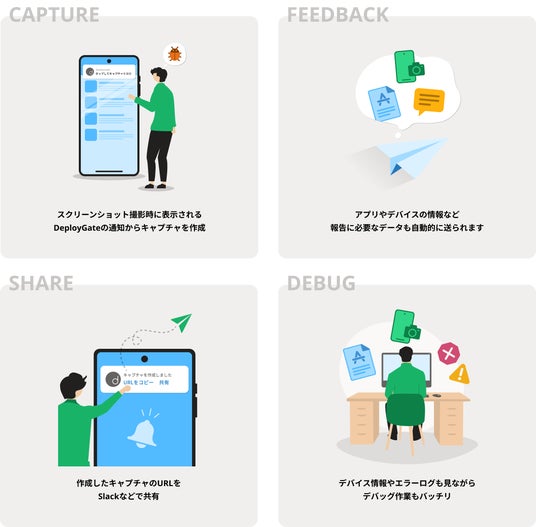 今回新たに開発・リリースした「キャプチャ機能」の追加によって、これまでにご好評いただいている「開発中のアプリの配布」に加え、「テスターからのフィードバック」をさらに強力にサポートすることができるようになりました。これにより、アプリ開発現場での作業がより高速かつ効率的に進められることが期待されます。