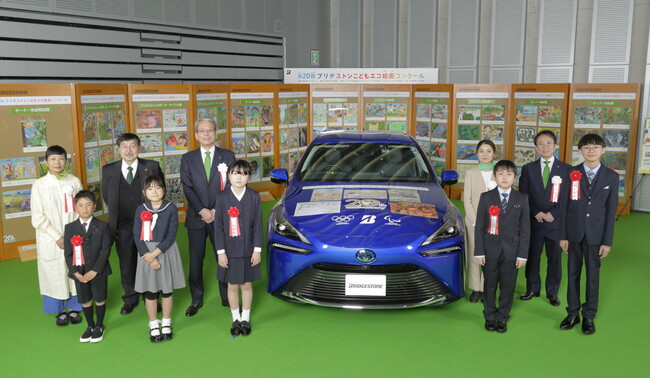 今回のテーマは「しぜんがいっぱい しあわせな くらし」で、子どもたちが日常や旅先で触れ合った自然を題材にした、自由で個性あふれる作品を募集しました。国各地から53,963点の応募を頂き、その中から公正かつ厳正な審査の結果、ブリヂストン大賞5点をはじめとする100点の入賞作品を選出し、2023年4月4日にブリヂストングローバル研修センター(東京都港区南麻布)において表彰式を行いました。表彰式では、応募作品をデザインした燃料電池自動車「MIRAI」も公開しました。