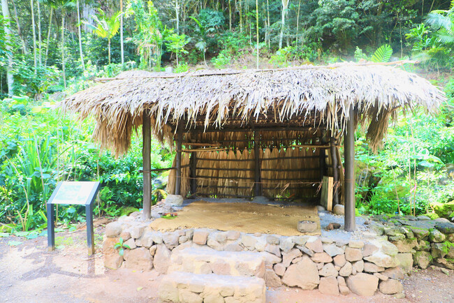 「ネイチャー&ユー ワイメアの滝ハイキングツアー」は、ノースショアのワイメア渓谷をハイキング、そして、ワイメアの滝まで行くツアーです。この美しいワイメア渓谷は、渓谷からノースショアの海に向かって広がっています。園内には、森、庭園、また、園内を流れる小川など、様々な景色を体験できます。全長 1.5 マイル(約 2.4 キロ)の敷地内には、約 52 のテーマ別庭園があり、絶滅の危機に瀕したハワイの植物のコレクションを含む、5000 種類の熱帯、亜熱帯植物が生息しています。その他、木や草、ヤシの繊維などを使って作られた古代ハワイのハレ(家)や遊びを楽しむ場所、歴史を感じる史跡など、昔のハワイを垣間見ることができます。何世代にも渡り、ハワイの聖地とされてきた、豊かな歴史と文化に彩られた場所をガイドが説明しながら進んでいきます。