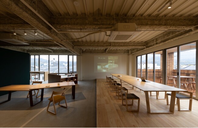 若葉家具製品が暮らしに合わせた配置となっていて、メーカーとしての製品ラインナップが一堂に会しています。またオンラインでの配信などリアルとデジタルの融合の場としても活用できます。