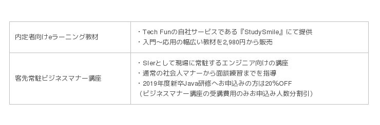 Tech Fun株式会社(本社:東京都台東区、代表取締役:笠井達也、以下Tech Fun)が運営するIT教育事業『Tech Fun.jp』は、これまでの新卒・未経験者向けJava研修カリキュラムの見直しを図り、2019年4月から新しいカリキュラムの提供を開始いたします。