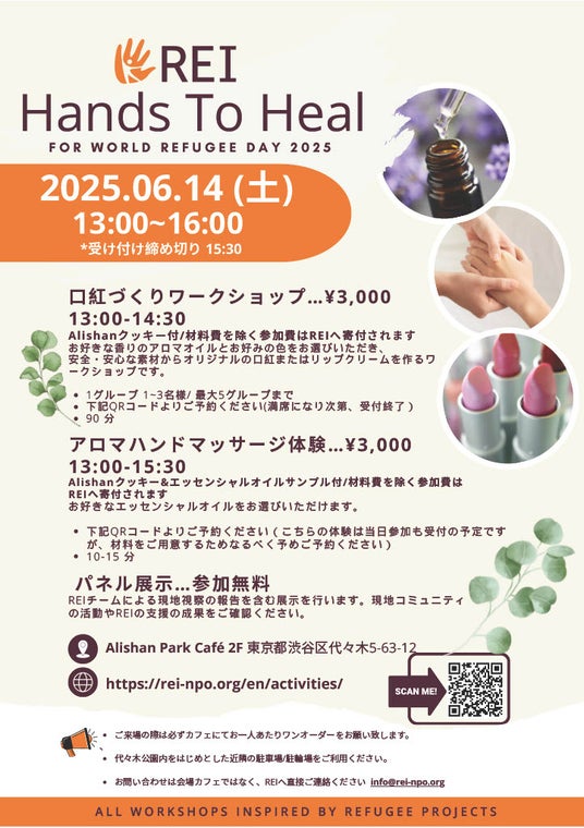 REIは、避難民の方々への連帯の意を表し、そのたくましい生き方を称えるために、2025年6月14日(土)、Alishan Park Cafeにて「世界難民の日ワークショップ」を開催いたします。