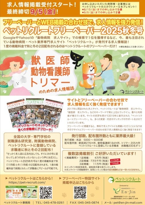 ◆詳細および申込み方法: https://pet-recruit.com/paper.html