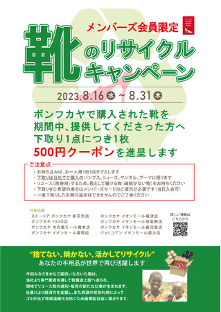 ボンフカヤにてご購入された不要になった靴(リユース可能な物)を