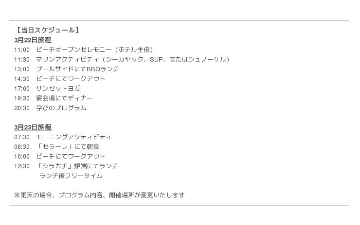 ※スケジュール、内容は変更の可能性がございますので、ご了承ください