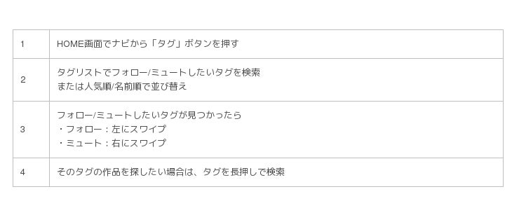 このリニューアルにより、ユーザーはリストからタグをスワイプするだけでフォロー/ミュートの設定を切り替えて、よりスムーズに自分好みの閲覧設定ができるようになりました。