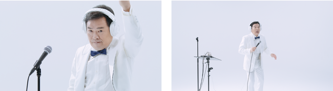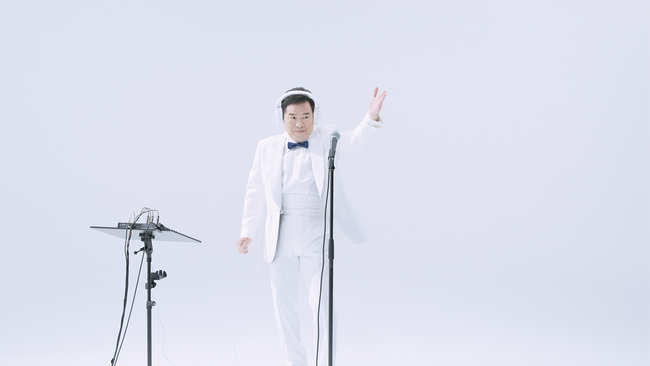 WEB CMの公開時点では楽曲の歌い手は公開せず、SNS上ではその美声の持ち主は誰なのかと憶測が広がりました。種明かしとして、「原材料、乳製品のみ」という混じり気のない「明治 Dear Milk」のような真っ白なセットで撮った、グッチ裕三さんの一発撮り風動画を公開します。