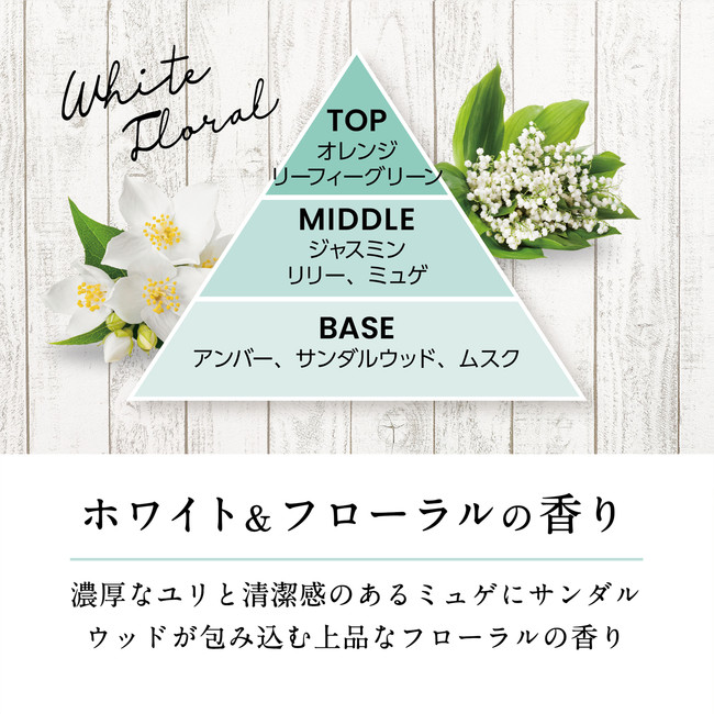 ●やわらかく上品に香る「ホワイト&フローラルの香り」