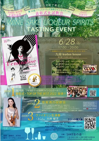 世界の女性ソムリエ、女性醸造家、女性ワインジャーナリスト、女性シェフなど、女性のワイン専門家が厳正なブラインド審査を行う「第16回フェミナリーズ世界ワインコンクール」が、2022年4月6日(水)~8日(金)にかけてフランス、パリにて行われました。2020年大会より日本酒部門が新設され、今年2022年大会からは、焼酎を含めた蒸留酒部門が増設。各部門の最高峰である【TOP OF THE BEST】に輝いた銘柄は前年比263%の売上増を達成する販売効果絶大の国際コンペとして世界中から注目されています。世界の女性から愛されるお酒という名誉ある称号を受けた銘柄の表彰式と試飲会、さらに【TOP OF THE BEST】の発表を、2022年6月28日(火)九段 kudan houseにて開催いたします。