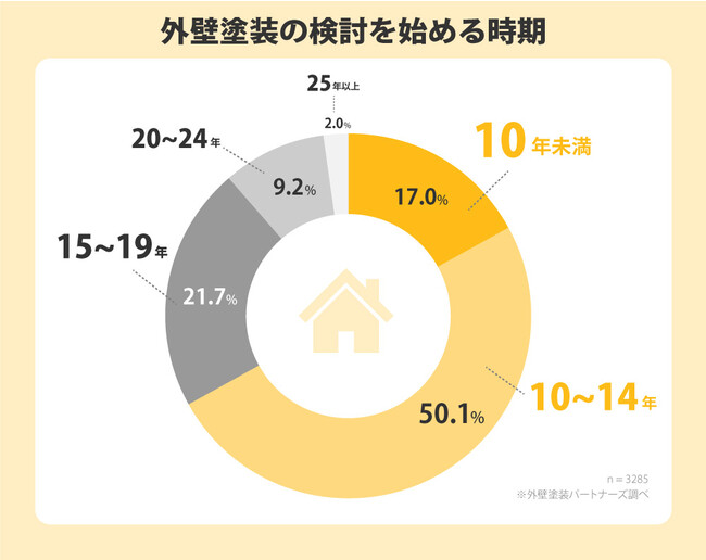 外壁塗装の見積もりサイト「外壁塗装パートナーズ」を運営する株式会社ソーラーパートナーズ(本社:東京都新宿区、代表取締役:中嶋明洋)は、「外壁塗装を前回の塗装から何年で検討し始めるのか」を過去の面談実績からのデータをまとめ、発表しました。