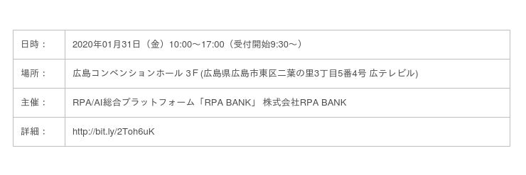 「RPA DIGITAL WORLD HIROSHIMA 2020」開催概要