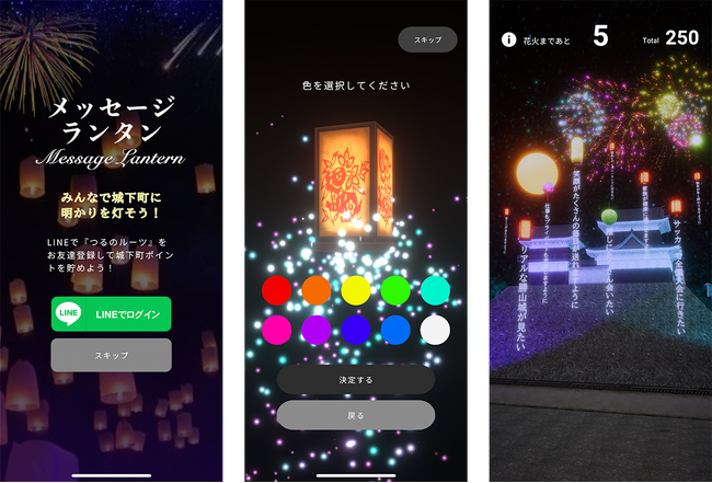 AR技術を使用してバーチャルな「ランタン」を作成し、願いごとを込めることで、参加者は都留市の歴史と未来が交差する特別な瞬間を楽しむことができます。