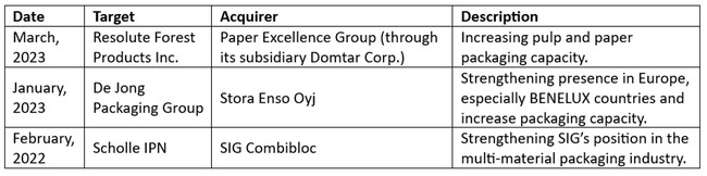昨年の紙包装業界におけるその他のM&A取引は次のとおりです。