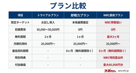 「WBC直前プラン」の概要