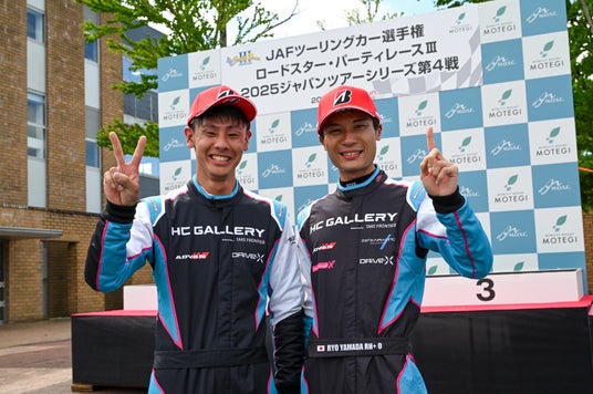 橋本隼選手(左)と山田遼選手(中央)橋本はロードスターパーティーレース2025シリーズ2位。山田はチャンピオン