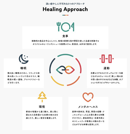 本企画は、株式会社ホークアイのCOCORISMが監修するヒーリング・リトリートプログラムです。COCORISMのヒーリング・リトリートプログラムをもとに、志摩 の「地」と「人」が織りなす、ココでしか体験出来ないプログラムを開発しました。伊勢志摩国立公園の南部の志摩・市後浜エリアを中心とする広域の観光拠点を作り出し、域内の複数の事業者と協力することで、観光客の地域内の回遊と、地域経済の活性化を図ります。