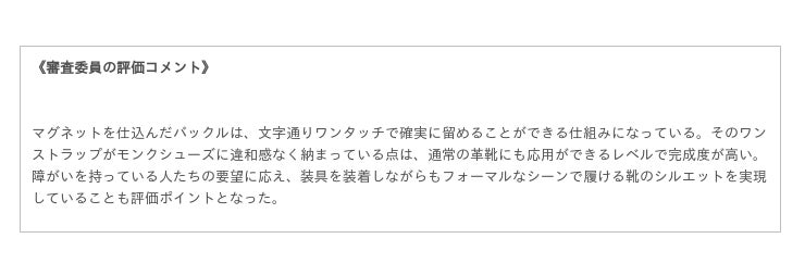 株式会社LUYLのメインブランド【Mana'olana(マナオラナ )】から、本革製男性用ビジネスシューズ第一弾として販売されたIMUAは、靴の美しさと着脱の両立を追求しながらも、手や足にハンディキャップを抱える人たちへの気配りをデザインにプラスした点が評価されました。