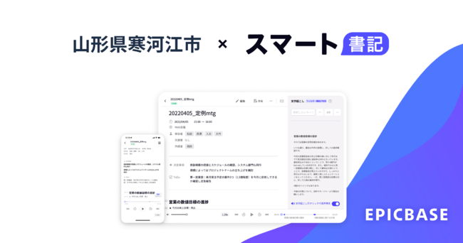 エピックベース株式会社(本社:東京都渋谷区、代表取締役:松田 崇義、以下エピックベース)が提供するスマート書記は、山形県寒河江市に導入され、議事録作成の効率化に向けた運用が開始されたことをお知らせいたします。
