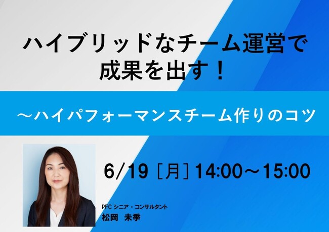 オンライン(在宅)とリアル(対面)の混ハイブリッドな働き方が定着しつつあります。ハイブリッドな働き方は、社員が好む働き方に沿うことで個人の力を引き出し、従業員の満足度向上にもつながる一方、ハイブリッドならではのチーム運営の難しさや苦悩もあります。では、そんなハイブリッドチームをハイパフォーマンスチームに導き、成果を出すためにはどうしたらよいのでしょうか?今回ご紹介するのは「ハイブリッドチーム実践ワークショップ」。ハイブリッドチーム運営にあたって押さえるべきポイントを学び、自チームについて振り返る、管理職やチームリーダー向けの新プログラムです。ハイブリッドなチーム運営ならではの難しさや落とし穴、それを克服するための具体的なノウハウや、受講者同士のディスカッションを多く取り入れ、知識だけでなく、自チームにすぐに取り入れらえる実践型のプログラムとなっています。6月19日(月)に詳細をご紹介するウェビナーを開催します。